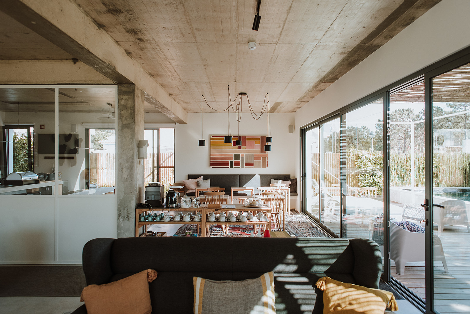 VOA.pt has several accommodation options in Comporta, from local accommodation to hostels and cafés. The B.Hostel is informal accommodation in a new, modern building in the central square of Brejos, located between the two villages of Carvalhal and Comporta. It offers simple, elegant accommodation with breakfast included. It has a large open-plan kitchen, living room, outdoor areas and a small swimming pool.